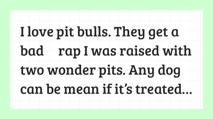 Guest+FollowI love pit bulls. They get a bad  rap I was raised with two wonder pits. Any dog can be mean if it’s treated bad. 90Share