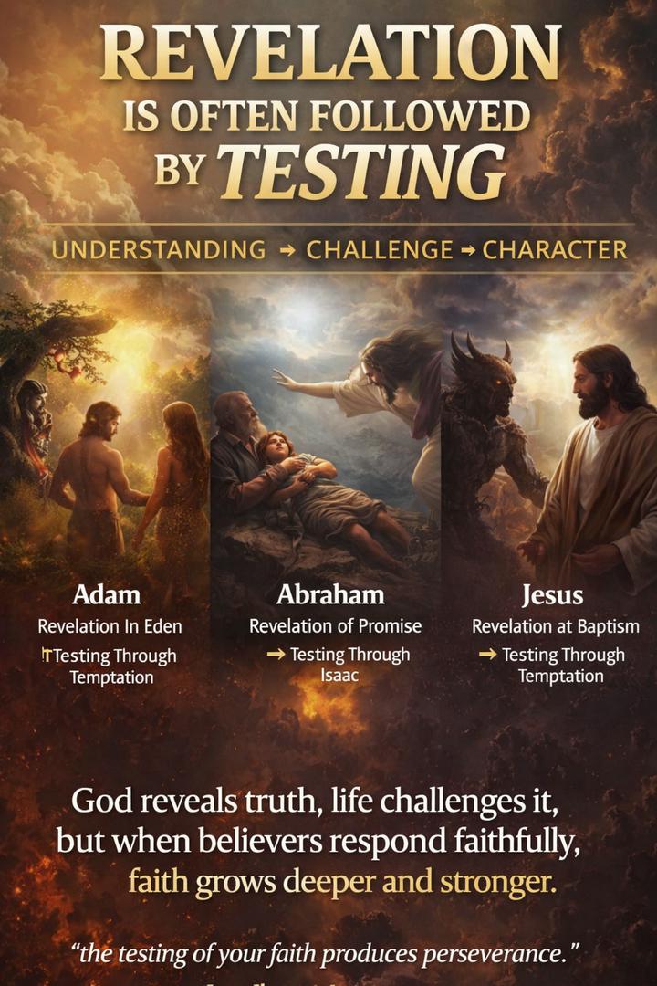 Throughout Scripture, a clear pattern appears in the spiritual life: revelation is often followed by testing. When God reveals truth, identity, or purpose, life soon presents situations that challenge whether that truth has truly taken root in the heart. Adam received God’s command in Eden, and shortly after faced temptation. Abraham received God’s promise, and later his faith was tested with Isaac. David was anointed king, yet endured years of trials before the throne. Even Jesus, after God declared Him His beloved Son at baptism, immediately faced temptation in the wilderness.