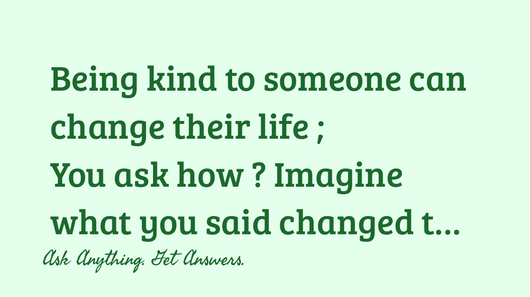 Justice 4 the people +FollowBeing kind to someone can change their life ; You ask how ? Imagine what you said changed that persons mind from hurting themselves or others . Be kind / talk it out / tell others about the goodness of God / be the difference in a positive way 💗 10Share