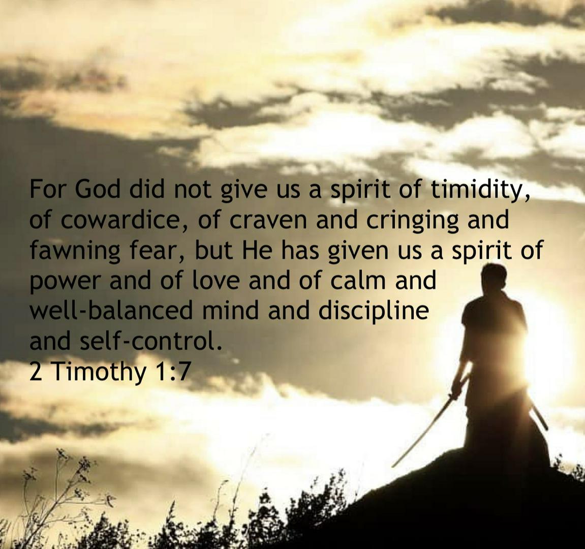 2 Timothy 1:7 Paul refers to himself as a special messenger of Jesus by the Will of God, and he had a message, a reminder for Timothy. Since all scripture is good for teaching and training and discipline, so this reminder to Timothy is a lesson for life…ours too. Paul doesn’t want us to forget about the flame that burned bright when He first called us as His child. We’re to rekindle it, keep it burning strong. His encouragement is not to be ashamed, but to testify to and for the Lord. Paul goes on to remind… warn us that suffering may accompany the message given in the power of God. He reminds us the power of God is void of a spirit of timidity, of cowardice, of fear. How do we define that power? Is it bench pressing twice our weight? Or, is it unimaginable, indescribable power to accomplish His will while we’re here, in the flesh. Power to love like He does, unconditionally…to have a calmness in chaos and a well-balanced mind, one assured of a constant flow of the Wisdom of God. What power would there be in discipline? Is it the discipline of being in His presence? The discipline of approaching the throne of grace, convicted, leading to confession and repentance? Perhaps it’s the discipline of the ‘3rd watch’, our nightly prayers when we ask Him how we’ve offended Him…today? And, there’s the power in us for self-control…in a world out of control, this is no small thing. Our emotions run hot and cold, He gives us the power of control over those emotions. In our surrender to Him, our faith and trust in Him overflows into everything we do. Our emotions are no longer under control of the flesh, but are now measured with wisdom, selflessness, and trust in the One Who saves. The more time we spend in His presence, soaking in His Word, receiving…Him and all He is… the more He strengthens us in His power. Our new names are Loved, Fearless, Courageous, Peace… and Forgiven. Lord, we want to step out in Your power to accomplish what You have for us today, we’re clothed in it