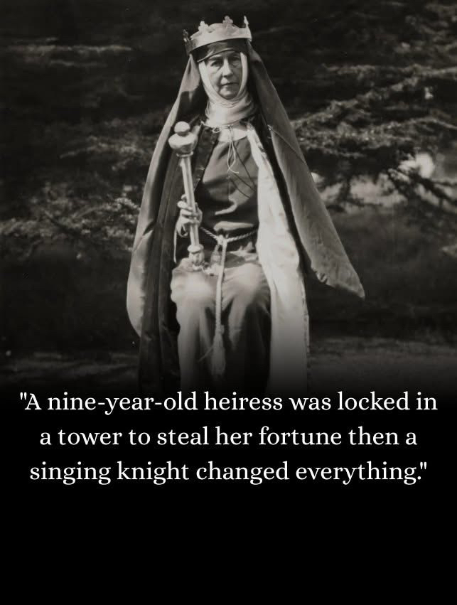 A nine-year-old heiress was locked in a tower to steal her fortune—then a singing knight changed everything.