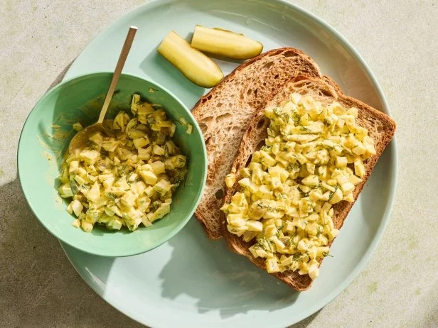 Food+FollowDill Pickle Egg Salad If you like your egg salad with lots of dill pickles, then take things to the next level by pickling the eggs themselves! Simply prick peeled hard-boiled eggs all over with a fork (a trick for faster flavor absorption) and submerge them in pickle brine overnight. The next day, prepare them as you would for regular egg salad. Chopped dill pickles reinforce the pickle flavor in the salad, while fresh dill stirred throughout adds a hint of green10Share