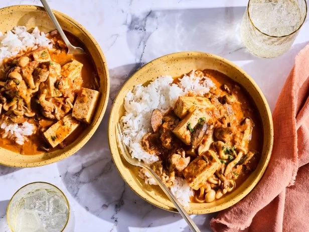 Food+FollowSaucy Tofu and Mushrooms Over Rice Tender tofu and crisp mushrooms are blanketed in an umami-rich tomato sauce in this quick and easy dish, perfect for your weeknight dinner rotation. A bit of heat from gochugaru and sambal oelek is tempered by coconut milk and a touch of miso, bringing a beautiful balance to the sauce. Serve it with plenty of steamed rice to sop up all the flavor.30Share