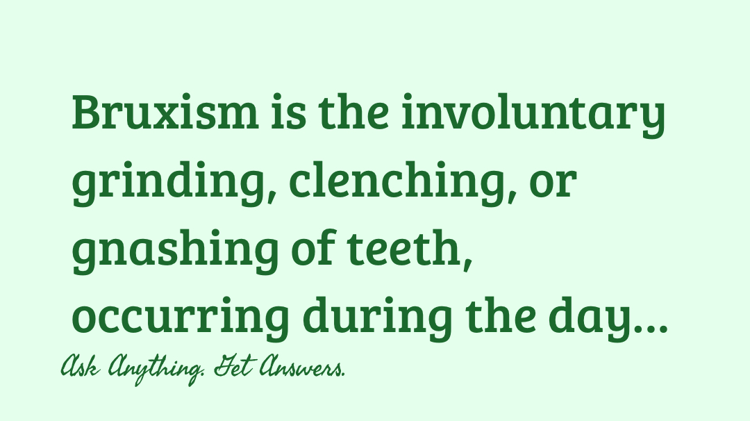 Bruxism is the involuntary grinding, clenching, or gnashing of teeth, occurring during the day (awake bruxism) or night (sleep bruxism), often linked to stress, anxiety, certain medications, and sleep disorders like sleep apnea. Symptoms include jaw pain, headaches, worn teeth, sensitive teeth, and sore facial muscles, potentially leading to fractured teeth or TMJ disorders. Treatment involves custom mouthguards, stress management, and addressing underlying sleep issues, though many people outgrow it, say Mayo Clinic and this YouTube video.