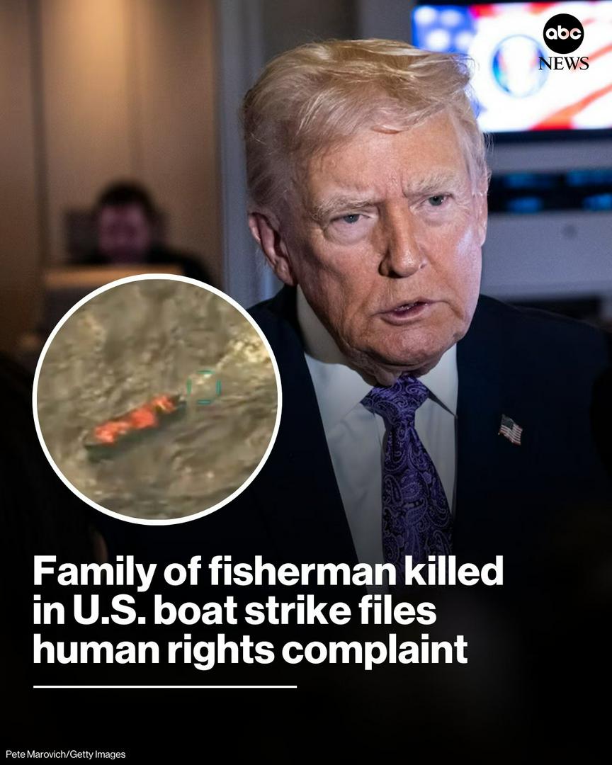 Larissa wilson+Follow“Family of Colombian Fisherman Killed in U.S. Strike Files Human Rights Complaint” The family of a Colombian fisherman killed during a U.S. military strike in the Caribbean on Sept. 15 has filed a formal complaint with the Inter-American Commission on Human Rights. They allege the U.S. government carried out an unlawful killing and are demanding a full investigation, accountability, and justice for their loved one. U.S. officials have not yet publicly responded to the filing.#BreakingNews #HumanRights #Colombia #USMilitary #Caribbean #JusticeForAll #GlobalNews #IACHR978383Share