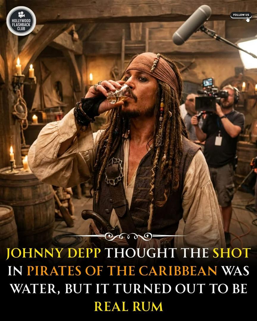While filming Pirates of the Caribbean, Johnny Depp had a moment that perfectly matched the unpredictable spirit of Captain Jack Sparrow. During one scene, Depp believed the drink he was about to take was simply water, something actors often use on set when a scene requires them to drink repeatedly. But when he took the shot, he quickly realized it was actually real rum. The unexpected moment added a bit of genuine surprise to the scene and became one of those funny behind the scenes stories fans love hearing about. Depp had already brought a wild and unpredictable personality to Captain Jack Sparrow, and moments like this only added to the legend surrounding the character’s creation during the early days of the film. Behind the camera, the Pirates of the Caribbean set was known for its playful atmosphere and creative freedom. Depp’s portrayal of Jack Sparrow was already full of improvisation, unusual movements, and quirky humor. Stories like the accidental rum shot remind fans that sometimes the most memorable parts of filmmaking come from unexpected moments that happen when the cameras are rolling.