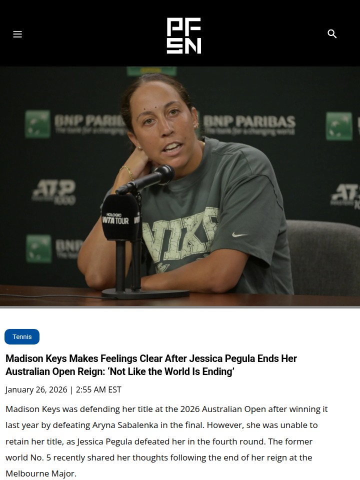Reginald Gonzalez+FollowPegula Ends Keys’ Aussie Open ReignTough one for Madison “Maddie” Keys fans—her Australian Open title defense came to a halt in the fourth round after a straight-sets loss to Jessica Pegula. Keys kept it classy, saying it’s not the end of the world and she’s proud to have been the champ. The Pegula-Keys rivalry is heating up, and Pegula now moves on to face Amanda Anisimova in the quarters. What do you think Keys should tweak for her next run? #Sports #Tennis #AustralianOpen00Share