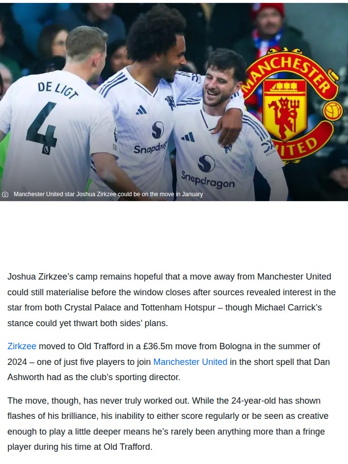Charles Mills+FollowZirkzee Transfer Saga: Spurs & Palace CircleLooks like the Zirkzee situation at Old Trafford is heating up! The Dutchman, who’s struggled to break into the Red Devils’ starting XI, is now being eyed by both Spurs and the Eagles as the transfer window ticks down. With King Carrick holding firm and Zirkzee desperate for game time ahead of the World Cup, could we see a late twist? Who do you think needs him more—Tottenham or Palace? #Sports #Soccer #Zirkzee00Share