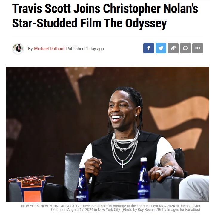 Jason Curtis+FollowTravis Scott’s Wild Plot Twist in The Odyssey 🎬Travis Scott’s cameo in Christopher Nolan’s The Odyssey is sparking major debate! Fans are split—some think his intense scene with the soldiers hints at a bigger role than the trailer lets on, while others argue it’s just a quick cameo. Plus, people can’t stop talking about his ongoing creative partnership with Nolan. Is Travis about to become Hollywood’s next big crossover star or is this just hype? #Entertainment #Movies #TravisScott00Share