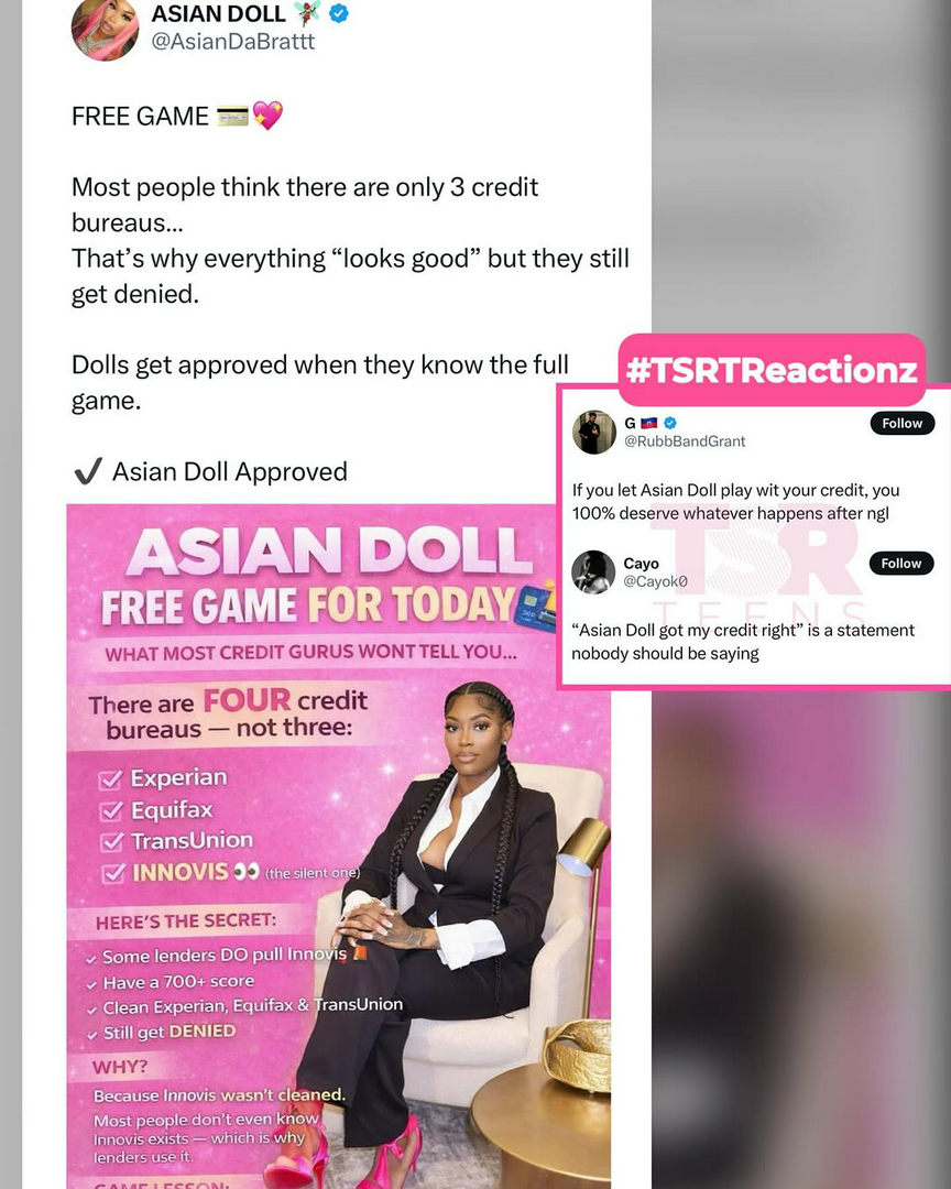 Kaitlyn Hammond+FollowAsian Doll’s Credit Biz Sparks Fandom Feud 🔥Asian Doll just launched her credit education business and the internet is split! Some fans are hyped for her new era as a businesswoman and mom, but others are throwing major shade, questioning if she’s legit. The real drama? Asian Doll clapped back HARD at trolls accusing her of scamming, saying she’s just teaching the game. Is this a boss move or a risky rebrand? #Entertainment #AsianDoll #CreditEducation00Share