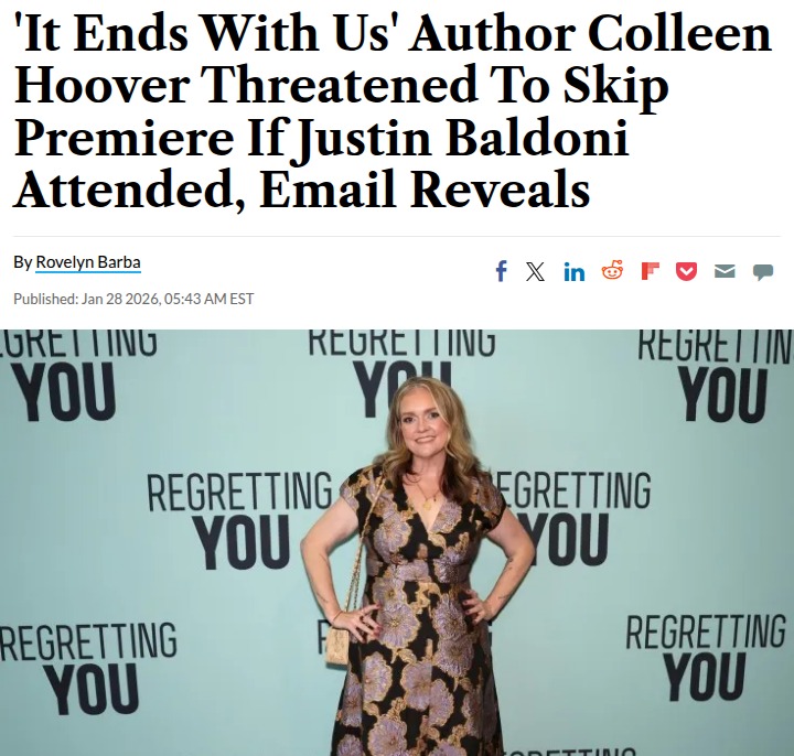 michaellowe+FollowColleen Hoover vs Justin Baldoni Drama 😳Did anyone else see those leaked emails? Colleen Hoover actually threatened to skip the 'It Ends With Us' premiere if Justin Baldoni showed up! Apparently, she felt super uncomfortable with him there and didn't want to be made the scapegoat for all the behind-the-scenes drama. Plus, Ryan Reynolds even called Baldoni a 'dumb-dumb' in his messages. The fandom is totally split—some are siding with Hoover, others think it's all just messy PR. #Entertainment #Movies #ColleenHoover00Share
