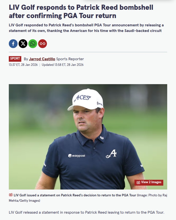 Krystal Lopez+FollowPatrick Reed’s Shocking PGA Tour FlipWow, Captain America is back! Patrick Reed just announced he’s leaving the 4Aces and LIV Golf to return to the PGA Tour in 2027, following Brooks Koepka’s earlier switch. LIV’s response was classy, wishing Reed well and stressing their focus on building a strong league. This rivalry between LIV and the PGA just got a lot more interesting. What do you think—will more stars follow Reed’s lead? #Sports #Golf #PatrickReed00Share