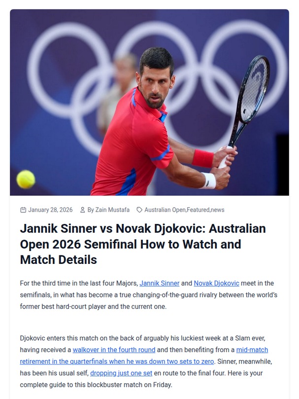 Kelly Jones+FollowSinner vs Djokovic: Rivalry Reaches Boiling PointCan the Italian Ice, Jannik Sinner, make it six straight over the legendary Novak Djokovic at the Aussie Open semis? Sinner’s dominated their recent hard-court battles, but King Novak always finds a way to surprise us on the big stage. With Sinner’s power game peaking and Djokovic coming off a lucky run, is this the real changing of the guard? Who’s your pick for this epic night session? Let’s hear your predictions! #Sports #Tennis #AustralianOpen00Share