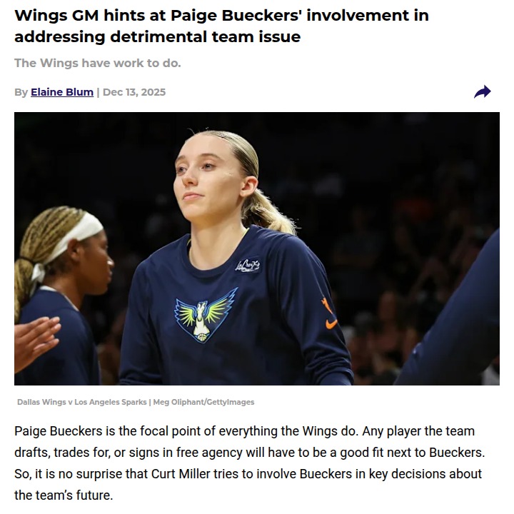 Martha Garza+FollowBueckers Key to Wings’ Rebuild MovesWings fans, it looks like Paige “Buckets” Bueckers is more than just the face of the franchise—she’s now the front office’s go-to voice on roster moves. GM Curt Miller revealed he’s leaning on Bueckers’ hoops IQ for input on trades, free agency, and the draft. With Dallas holding the #1 pick and a young core, the big question is: which vets will want to join forces with Bueckers and help turn things around? #Sports #IceHockey #DallasWings00Share