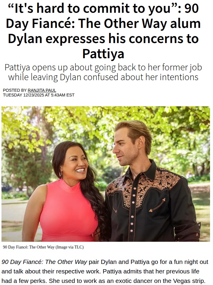 Amanda Robbins+FollowDylan Drops a Bombshell on Pattiya 💣Dylan just put Pattiya on blast about her past as a Vegas dancer, saying he can’t fully commit if she’s still hung up on that lifestyle. He’s worried she wants to go back for the fast cash, and fans are split—some say he’s being unfair, others think Pattiya’s not ready to settle down. The debate is getting heated! #Entertainment #Celebrity #90DayFiance10Share