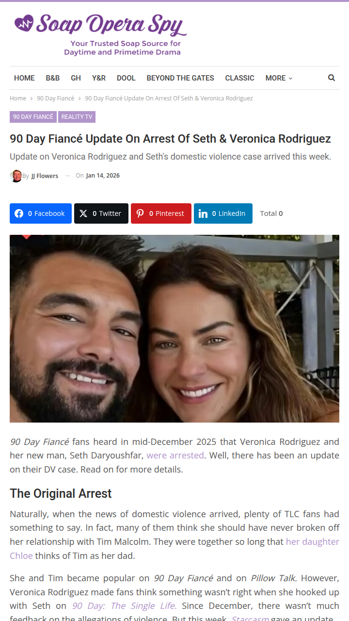 Henry Thomas+FollowVeronica & Seth’s Arrest Shocks 90DF Fans 😱Did anyone see this coming? Veronica Rodriguez and her fiancé Seth Daryoushfar just got arrested for domestic violence and assault—right after announcing their engagement in Venice! Fans are split: some say there were red flags (remember her emotional Tell All?), while others think Jamal’s shady comments are just adding fuel. Is this the biggest 90 Day Fiancé twist yet, or are we missing something? #Entertainment #TVSeries #90DayFiance01Share