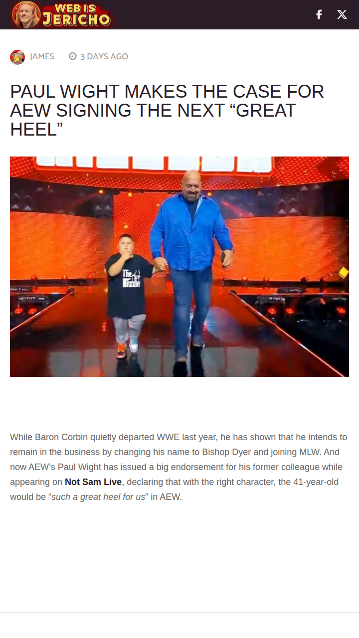 Stacie Lee+FollowShould AEW Take a Chance on Bishop Dyer?Big Show just dropped a hot take on Not Sam Live, saying Bishop Dyer (fka Baron Corbin) could be AEW’s next great heel if given the right character. The Lone Wolf never quite hit main event status in WWE, but with his proven mic skills and underrated footwork, could he finally break out in AEW? Would you want to see him mix it up with MJF or Swerve? #Sports #Wrestling #AEW00Share