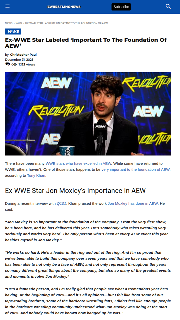 Kendra Ward+FollowWhy Mox Is AEW’s Real MVPTony Khan just dropped some serious praise on Jon Moxley, calling him the backbone of AEW. From the first show to now, Mox has been the workhorse, showing up for every event and pushing through injuries. Khan says the chase for Moxley, especially around Double or Nothing and the Owen Hart tournament, has been huge for AEW’s commercial success this year. Do you think Mox is the most important ex-WWE star in AEW history? #Sports #Wrestling #AEW00Share