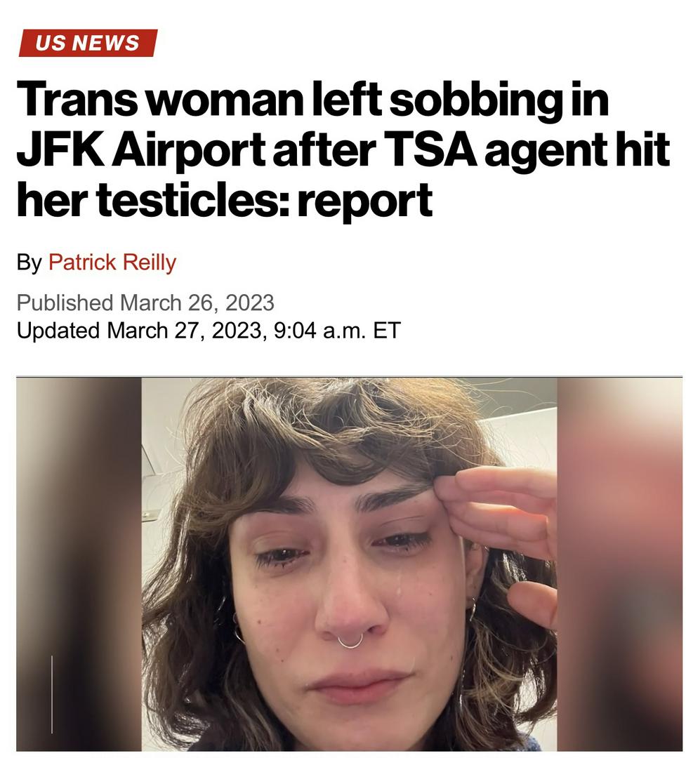 Terric Higgins+FollowWell I’m guessing they thought she was carrying something illegal on board and decided to check in that area and hit something that shouldn’t have been there 😂 😂 😂 Honestly this is a horrible and sad situation for both the person and the TSA agent. Both of their lives will never be the same after this situation. #JFKairport #Transgender #TSAStories #AirportDrama 231184Share