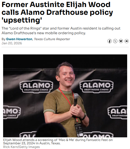 Christian Jones+FollowElijah Wood slams Alamo Drafthouse’s phone policyAlamo Drafthouse’s move to ditch pen-and-paper food orders for phone-based ordering has really hit a nerve—especially with former Austinite and film lover Elijah Wood. He called the change “a profound and upsetting mistake,” echoing what many fans feel: phones in theaters ruin the magic. Folks are venting everywhere, from social media to bathroom graffiti, saying the new system just adds more distractions. For a place famous for its strict no-phones rule, this feels like a big shift. Do you think tech upgrades are worth it if they mess with the movie experience? #Entertainment #Celebrity #AlamoDrafthouse00Share
