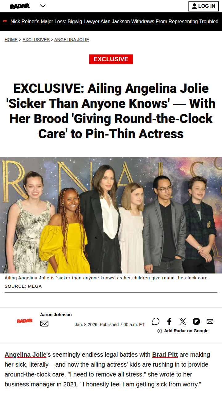 Angelica Mclaughlin+FollowAngelina Jolie Drama: Kids Step In 🕵️♀️Angelina Jolie’s health is reportedly taking a hit from her ongoing legal war with Brad Pitt, and now her kids are stepping up to care for her 24/7. The real twist? The children are so worried, they’ve made a pact to never leave her alone. Some fans say Brad’s relentless lawsuits are to blame for the family’s stress, while others think the media’s painting Angie as the victim. Where do you stand in the Jolie-Pitt saga? #Entertainment #Celebrity #AngelinaJolie1418Share