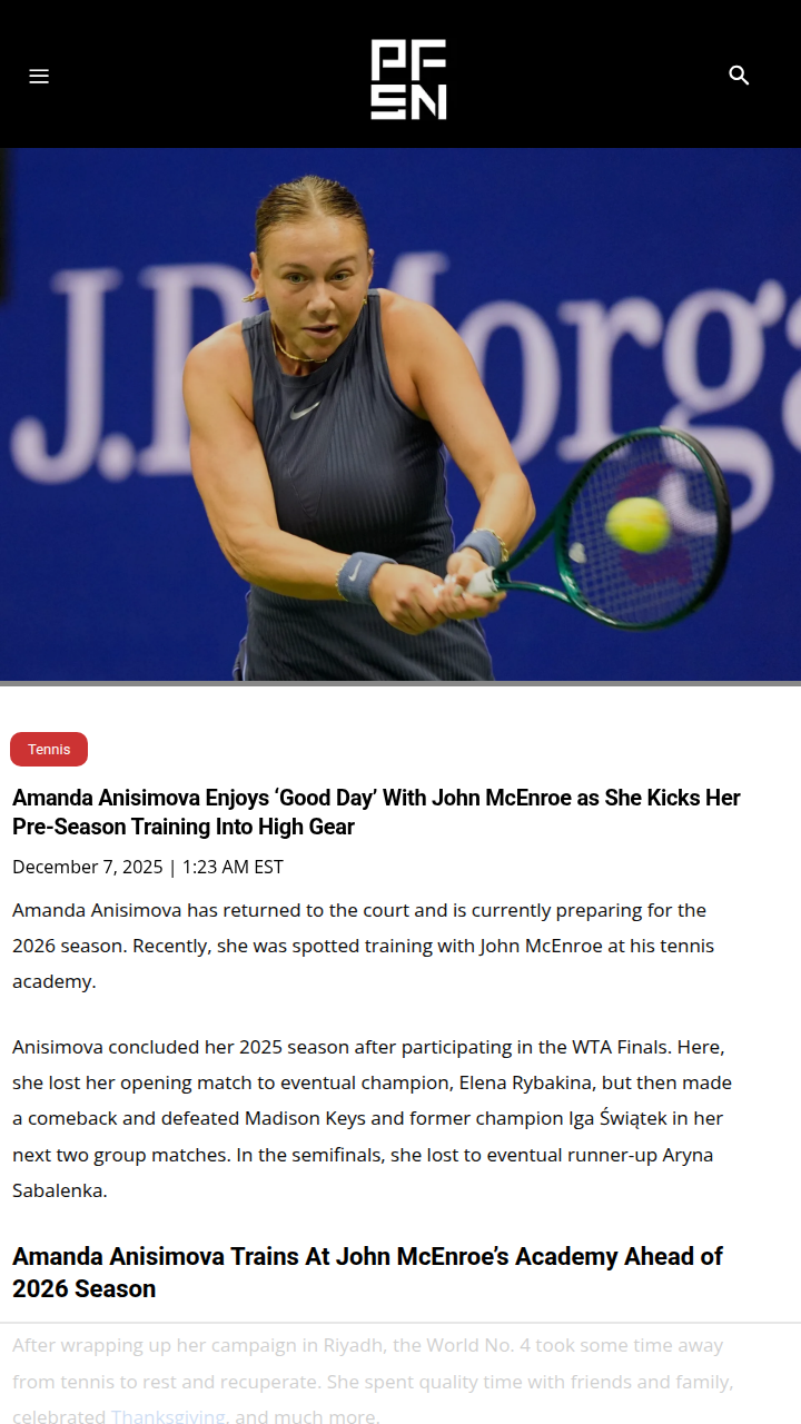 Nicholas Henderson+FollowAnisimova Trains With McEnroe: Eyes on AOAmanda Anisimova is back in action, ramping up her pre-season with some legendary advice from Johnny Mac at his academy. After a strong 2025 run—taking out big names like Keys and Iga, but falling short to Sabalenka—she’s looking to sharpen her edge for 2026. With the rivalry against Sabalenka heating up, all eyes are on Amanda as she preps for the Brisbane International and another shot at Grand Slam glory Down Under. #Sports #Tennis #Anisimova00Share