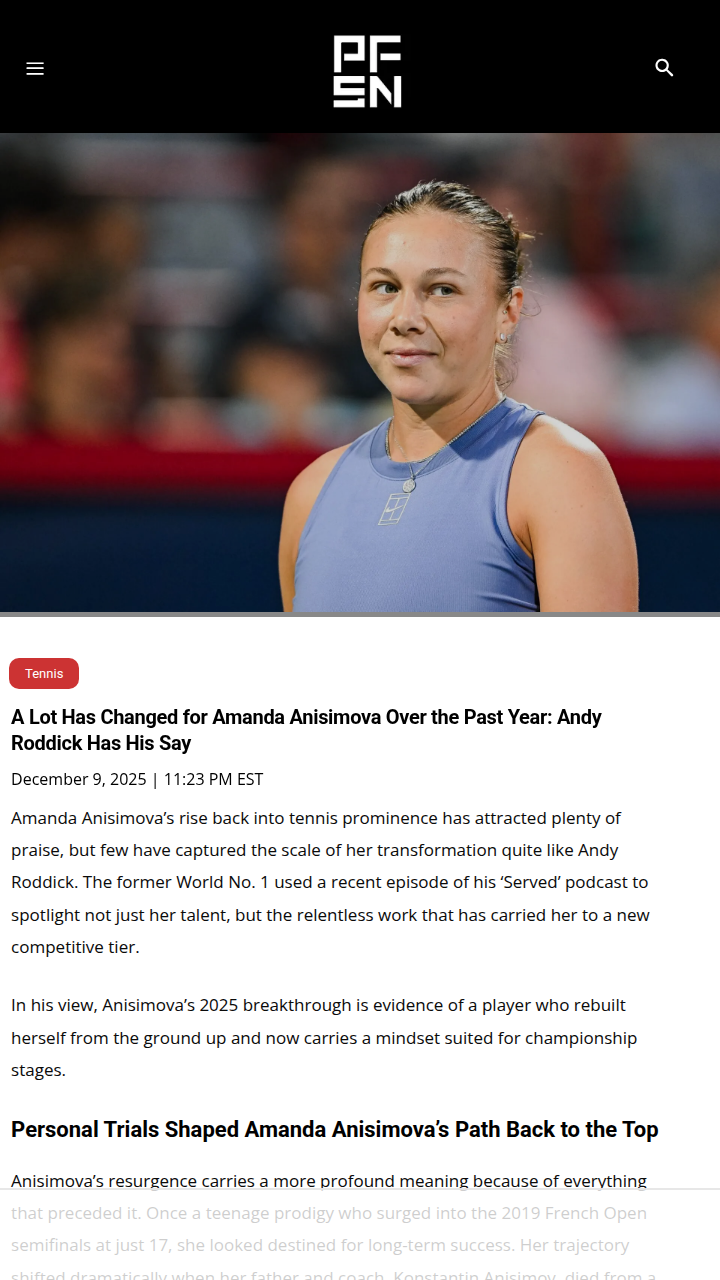 Danielle Strickland+FollowAnisimova’s Comeback: Roddick Breaks It DownWow, what a year for Amanda Anisimova! After her break from tennis and all the personal battles, she’s come back swinging—literally. Andy Roddick, the former top dog, just praised her transformation on his podcast, saying she’s not just having a hot streak, but has rebuilt herself into a legit weekly contender. Two WTA 1000 titles, two Slam finals, and now World No. 4? Roddick says when she talks about winning a Major, we should believe her. Thoughts on her rivalry with the top 5? #Sports #Tennis #Anisimova21Share