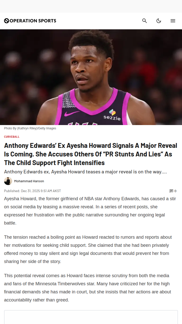 Christian Jones+FollowAnthony Edwards’ Ex Drops Child Support Bombshell 🧨Ayesha Howard just hinted at a huge reveal in her child support battle with Anthony Edwards, and fans are losing it. She claims she was offered hush money to keep quiet and is calling out “PR stunts and lies” from Edwards’ camp. The drama is getting wild, with both sides accusing each other of using their daughter for publicity. Is this about money or something deeper? This case is turning into one of the messiest celebrity custody fights yet! #Entertainment #Celebrity #AnthonyEdwards51Share