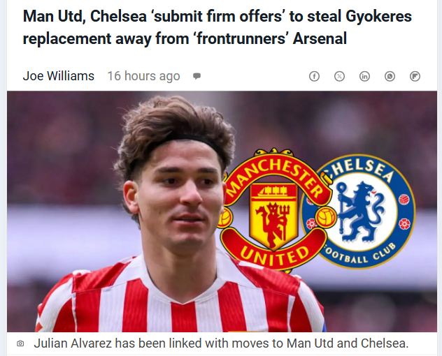 kochcandice+FollowArsenal, United & Chelsea in Alvarez ChaseLooks like the race for Julian Alvarez is heating up! With Arsenal dubbed the frontrunners for the ex-City striker, both the Red Devils and the Blues have now tabled firm offers to Atletico Madrid. The Gunners’ lack of a true goal machine has fans buzzing about what Alvarez could bring—especially after Lineker said it’d be ‘game over’ if he joins Arsenal. Will King Arteta get his man, or will United or Chelsea swoop in? #Sports #Soccer #Arsenal00Share