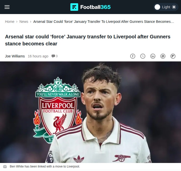Jamie Mack+FollowBen White to Liverpool? Arsenal Fans ReactBig news in the transfer rumor mill: Arsenal’s own Ben White could be eyeing a move to Liverpool this January, especially with the Reds needing cover after Conor Bradley’s injury. While the Gunners have made it clear they don’t want to sell to a rival, Danny Murphy thinks the move makes sense for both sides. Would White really force a transfer to Anfield, or will Arsenal hold firm? Let’s hear your takes, Gooners and Reds! #Sports #Soccer #Arsenal00Share