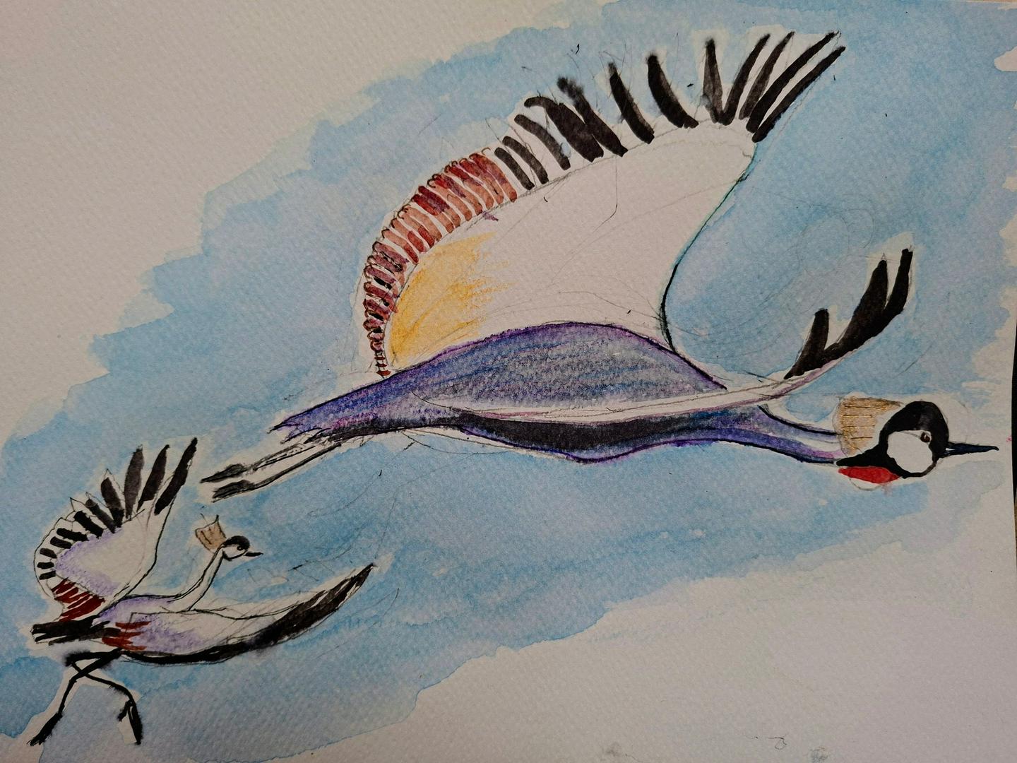 Olivia Brown+FollowTwo crowned cranes flying #watercolours #watercolour #watercolor #art #artists #painting #nature #birds #animals #cranes #story #illustration #narrative210Share