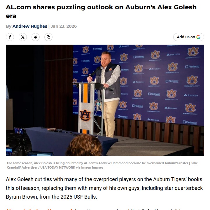 Amy Williams+FollowAuburn’s offense gets a total makeoverAuburn football fans, get ready for a wild ride—next season’s offense will barely resemble last year’s squad. After a rough 2025, new head coach Alex Golesh hit the transfer portal hard, bringing in 25 new offensive players, including 11 from his old USF team. The running back group looks especially stacked, with Bryson Washington joining Jeremiah Cobb for what could be the deepest unit on the team. Byrum Brown, who led the nation in total offense at USF, is now at quarterback. With so many fresh faces, which position group do you think will make the biggest impact in 2026? #Sports #Football #AuburnFootball00Share