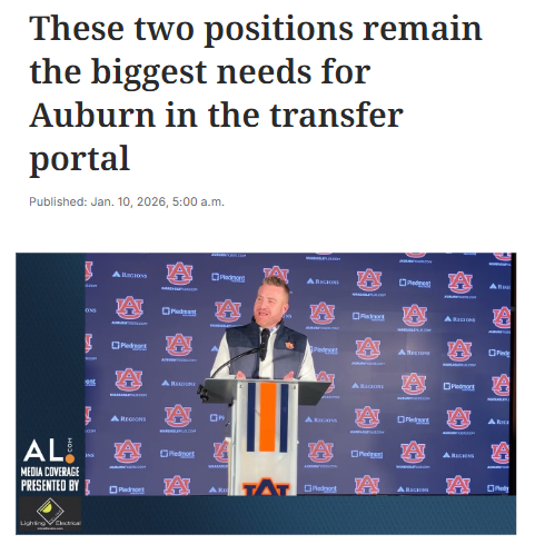 Christopher Hughes+FollowAuburn’s transfer portal shakeup: What’s next?Auburn football is in the middle of a major roster overhaul, with over 50 players leaving and 14 new transfers already signed after just one week of the portal window. The new head coach, Alex Golesh, has brought in a wave of talent from USF—including star QB Byrum Brown and several top receivers—giving the Tigers a fresh look. But the biggest gaps remain on both the offensive and defensive lines, where Auburn lost a combined 20 players. With the portal still open, which positions do you think Auburn should prioritize next? #Sports #Football #AuburnFootball00Share