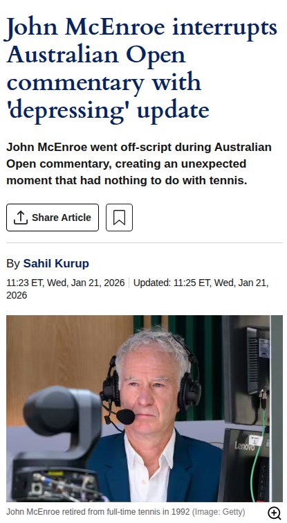 Aaron Gentry+FollowMcEnroe’s ‘Depressing’ Rangers Rant at AOOnly Johnny Mac could steal the show at the Australian Open with a hockey hot take! During the Alcaraz-Hanfmann match, McEnroe couldn’t hold back about his beloved Rangers’ freefall, calling their sell-off “depressing.” From trading Trouba to cycling through coaches, the Blueshirts’ woes are hitting fans hard. Anyone else feel McEnroe’s pain, or is this just classic Mac stirring the pot? #Sports #AustralianOpen #JohnMcEnroe00Share