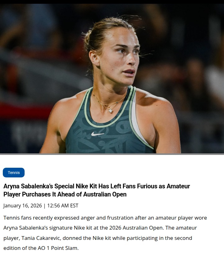 Danielle Strickland+FollowSabalenka’s Nike Kit Drama at Aus OpenAnyone else following the drama at the Aussie Open? Queen Aryna’s signature Nike kit was spotted on an amateur, Tania Cakarevic, during the AO 1 Point Slam—before Sabalenka even hit the court! Fans are fuming, saying it kills the 'signature' vibe. Is Nike disrespecting the reigning champ, or is this just part of the merch game? Let’s hear your takes! #Sports #Tennis #AustralianOpen00Share