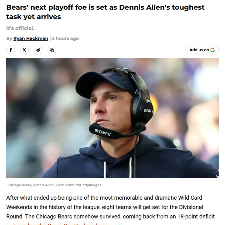 Christopher Hughes+FollowBears vs Rams: Stafford, Adams Return to SoldierWhat a Wild Card comeback by Da Bears! Down 18 to the Pack and still found a way to send Cheeseheads packing—again. Now, the Monsters of the Midway face their biggest test yet: Stafford and the high-flying Rams, with old nemesis Davante Adams back in Chicago. Can Dennis Allen’s banged-up D hold up against the league’s top offense? Or will Stafford’s crew spoil the party at Soldier Field? Let’s hear your takes! #Sports #Football #BearsNation00Share