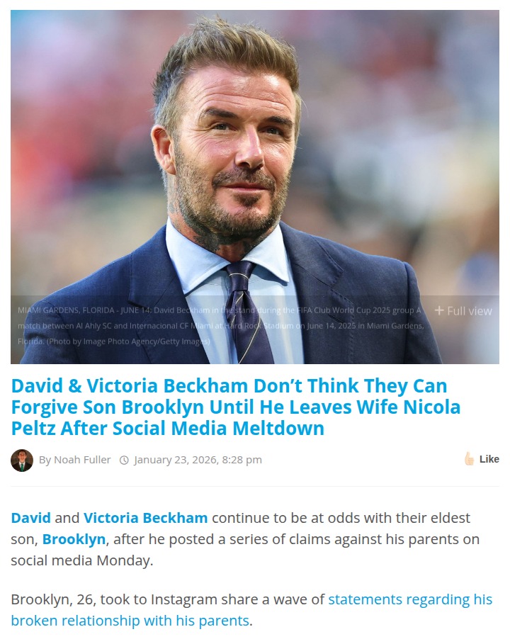Amanda Robbins+FollowBeckhams vs Nicola Peltz: Family Drama! 😱The Beckhams are reportedly refusing to forgive Brooklyn until he leaves Nicola Peltz, after Brooklyn’s explosive social media posts accusing his parents of controlling the family narrative. Fans are split: is Nicola really the reason for the rift, or are David and Victoria just not ready to let go? This drama is giving major #TeamNicola vs #TeamBeckham vibes! #Entertainment #Celebrity #Beckhams00Share