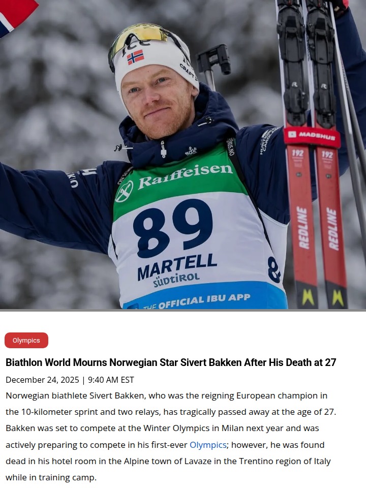 Dawn Fritz+FollowBiathlon Family Remembers Sivert BakkenAbsolutely heartbreaking news from the biathlon world—Norway’s rising star Sivert Bakken, the reigning European champ and a true force in the mass start, has passed away at just 27. The “comeback kid” had just returned from a tough battle with myocarditis and was prepping for his Olympic debut. Tributes are pouring in from teammates like Sturla Lægreid and rivals like Tommy Giacomel, showing how much Bakken meant to the sport. Gone way too soon, but never forgotten. #Sports #Biathlon #SivertBakken00Share