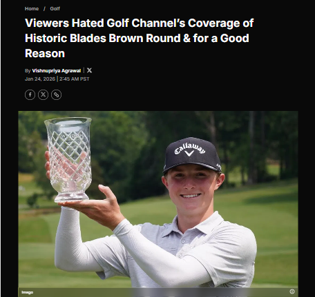 Krystal Lopez+FollowGolf Channel Misses Blades Brown’s AmEx MagicCan you believe the Golf Channel barely showed Blades Brown’s historic 60 at The American Express? The 18-year-old phenom tied world No. 1 Scottie Scheffler and nearly became the youngest ever to shoot 59 on Tour! Instead, we got endless shots of players way out of contention. Fans are rightfully upset—this was a record-breaking moment, and the broadcast totally dropped the ball. Do you think the network will learn from this? #Sports #Golf #BladesBrown10Share