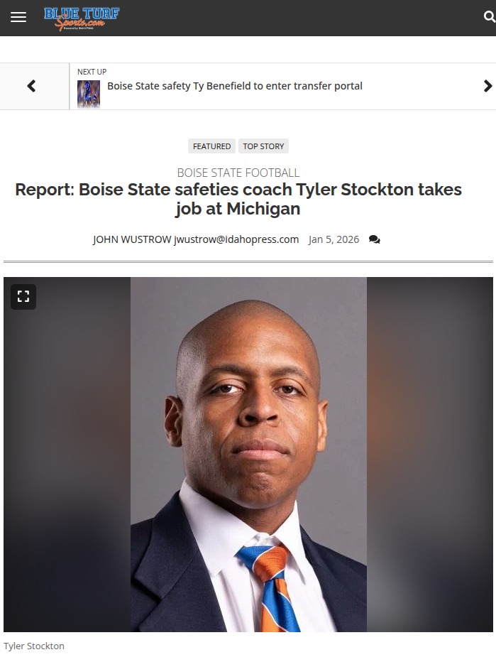 Christopher Hughes+FollowStockton Bolts from Broncos to MichiganBig news out of Boise—Tyler Stockton, the mastermind behind the Broncos’ secondary turnaround, is heading to Michigan to coach safeties under new boss Kyle Whittingham. After taking Boise’s pass defense from 107th to 15th in the nation, Stockton’s move is a major shakeup. Can the Wolverines’ D get even nastier with his Broyles-nominated mind on board? Broncos fans, who fills the void now? #Sports #Football #BoiseState00Share