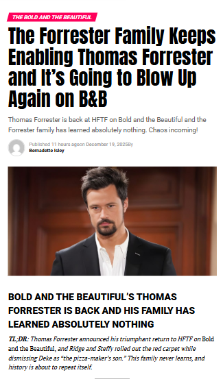 Kaitlyn Hammond+FollowThomas Forrester’s Villain Era Begins 😈Thomas Forrester getting rejected by Hope Logan could be the ultimate Bold and the Beautiful twist! Imagine if Hope picks her new brother Deke for HFTF and Thomas storms off to join Bill Spencer at Spencer Publications. The betrayal would be epic—Ridge would lose it, Steffy would feel betrayed, and Bill would finally have the ammo to take down Forrester Creations. Thomas as the designer villain? The fandom would explode! Would you root for Thomas or is this a step too far? #Entertainment #BoldandBeautiful #ThomasForrester63Share