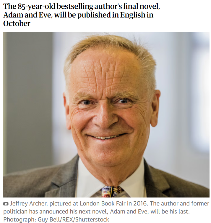 Shannon Estrada+FollowJeffrey Archer’s Last Novel Shocks Fans 📚Jeffrey Archer just dropped the bomb that his next book, Adam and Eve, will be his FINAL novel ever! After 50 years and 300 million books sold, he says he can’t top this one. But here’s the twist: fans are debating if he’s really done, or if this is just another Archer publicity stunt. Some think he’ll be back with more drama! #Entertainment #Books #JeffreyArcher00Share