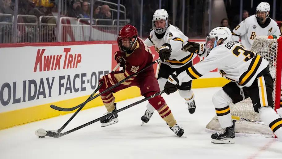 Jordan Leblanc+FollowBoston College’s comeback falls short in thrillerBoston College men’s hockey put up a fierce fight against Western Michigan, nearly pulling off a late comeback in the Kwik Trip Holiday Face-Off. After falling behind 3-0, the Eagles rallied with goals from Aram Minnetian, Ryan Conmy, and Dean Letourneau, narrowing the gap to just one with under two minutes left. But Western Michigan sealed the deal with an empty-netter, ending the game 5-3. The energy was electric, and you could feel the tension as BC pushed for the tie. What do you think the Eagles need to do to close out these tight games? #Sports #IceHockey #BostonCollege00Share