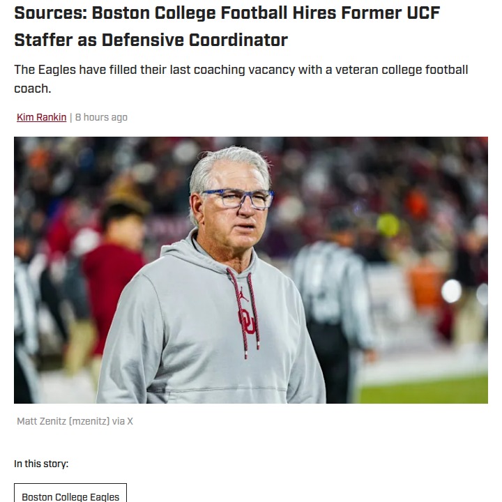 Michael Pitts+FollowBoston College shakes up football staffBoston College is making a bold move by bringing in veteran coach Ted Roof as the new defensive coordinator. After a tough 2-10 season, the Eagles are clearly looking for a fresh start and more stability on defense. Roof’s experience spans decades and includes stops at powerhouse programs like Auburn, Penn State, and Oklahoma. With so many new faces joining the coaching staff this offseason, it feels like a real turning point for BC football. Do you think these changes will finally help the Eagles turn things around? Let’s hear your thoughts on the new direction! #Sports #Football #BostonCollege00Share