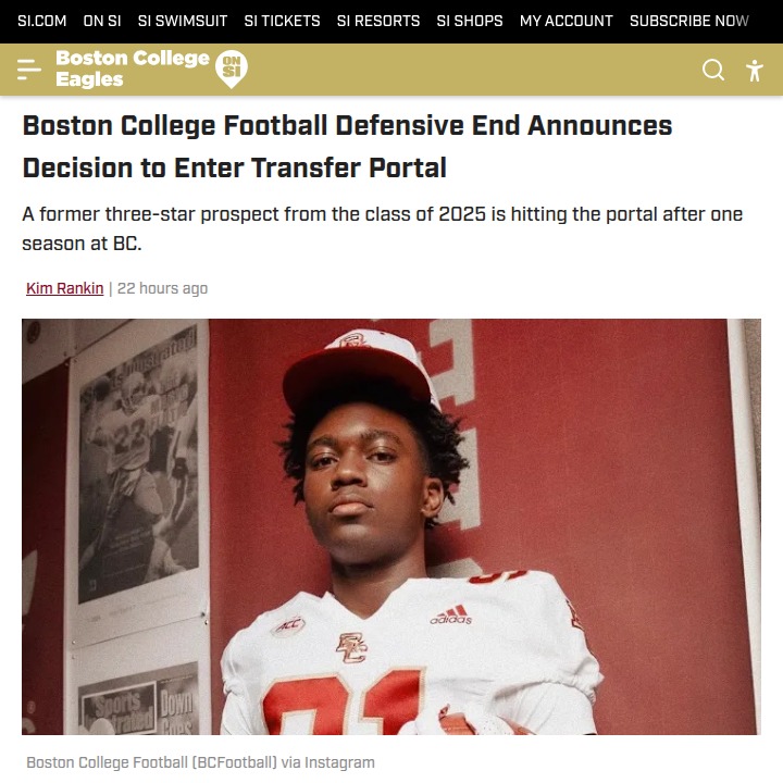 Jeffrey Armstrong+FollowBC football faces major roster shakeupBoston College football is seeing a wave of departures, with freshman defensive end Jayden Fry now the 18th player to enter the transfer portal this offseason—and the fifth just today. Fry, a promising recruit from Raleigh, only played one game but was highly praised for his relentless style. This sudden exodus is bound to raise questions about what’s happening behind the scenes at BC. Is this just the new normal in college football, or is there something more going on with the Eagles’ program? What do you think is driving so many players to leave? #Sports #Football #BostonCollege00Share