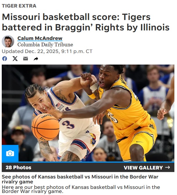 EchoingEagle+FollowIllinois hands Missouri historic Braggin’ Rights blowoutIllinois just delivered Missouri its worst loss ever in the Braggin’ Rights rivalry, crushing the Tigers by 43 points. For Mizzou fans, this wasn’t just a bad night—it was the kind of game that leaves you wondering what’s next for the team. Missouri couldn’t buy a bucket, struggled on defense, and looked completely outmatched. Meanwhile, Illinois was lights out, hitting nearly half their threes and dominating the boards. With SEC play looming, Mizzou has a lot to figure out. Is this just a rough patch, or are bigger changes needed? How are you feeling about the Tigers’ direction? #Sports #BragginRights #IllinoisvsMissouri00Share