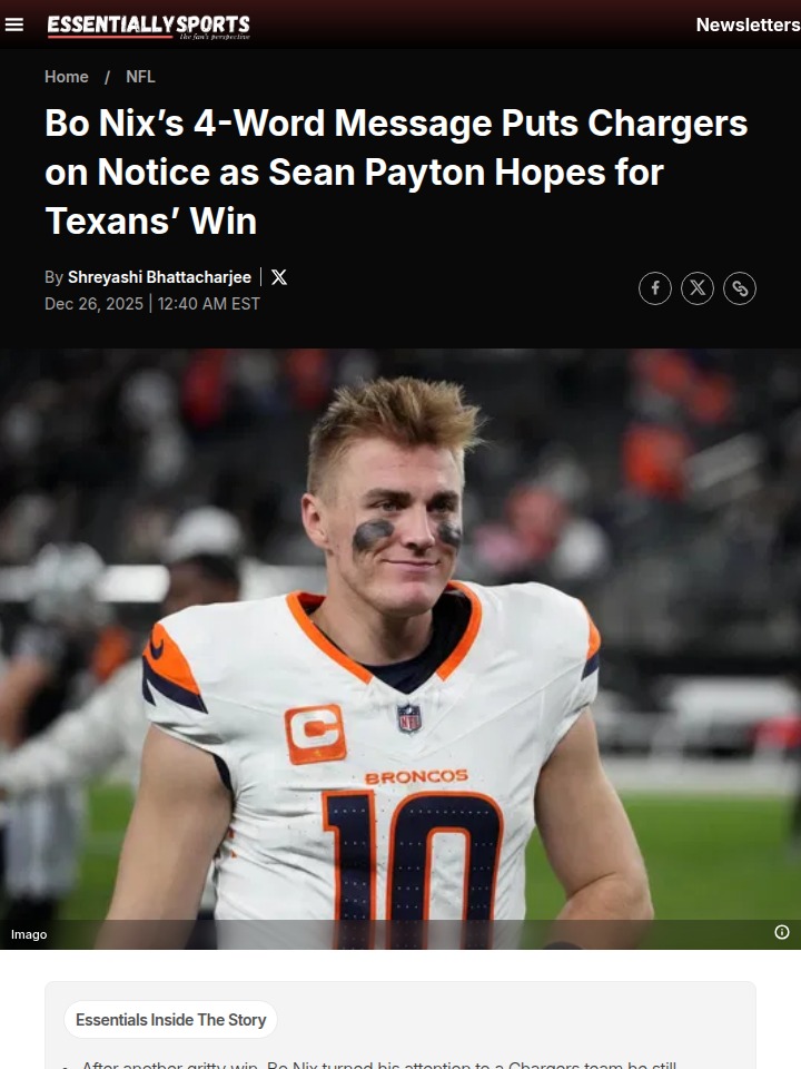 Christopher Hughes+FollowBo Nix’s Message: Broncos vs Chargers ShowdownBroncos Country, it’s all coming down to Week 18! Bo Nix just dropped a confident four-word message after outdueling the Chiefs, putting the Bolts on notice: “Us vs. Them. Period.” Nix is 0-3 against the Chargers since Harbaugh took over, but with the AFC West crown and No. 1 seed on the line, it’s time for him to flip the script. Can Nix finally get over the hump, or will the Chargers keep haunting Denver? Let’s hear your takes! #Sports #Football #BroncosCountry21Share