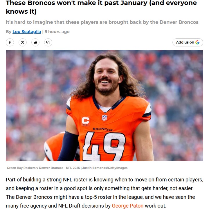 Michael Pitts+FollowDenver Broncos shake up: Who’s out next?Big changes are coming for the Broncos, and it’s not just about chasing a Super Bowl. With contract crunches and younger talent waiting in the wings, Alex Singleton, John Franklin-Myers, and Ben Powers are all likely playing their final season in Denver. Singleton’s age and free agency status, Franklin-Myers’ price tag, and Powers’ contract make them the odd men out as the team looks to stay competitive and manage the cap. What do you think—should the Broncos move on from these vets, or is there still value in keeping them around for another run? #Sports #Football #BroncosCountry10Share