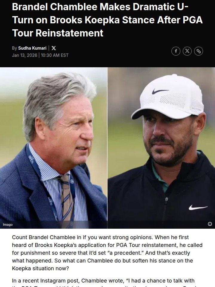 Michael Singh+FollowChamblee Backs Down on Koepka’s PGA ReturnWow, talk about a flip! Brandel Chamblee, once Koepka’s harshest critic over the LIV saga, now says the PGA Tour’s $85M penalty for Brooks is fair. The real story? Koepka’s comeback under the new Returning Member Program, but with some major strings attached—no equity, no FedEx Cup bonus, and a hefty charity donation. Is this the start of a bigger exodus from LIV, or just a one-off for the Major champs? #Sports #Golf #BrooksKoepka00Share