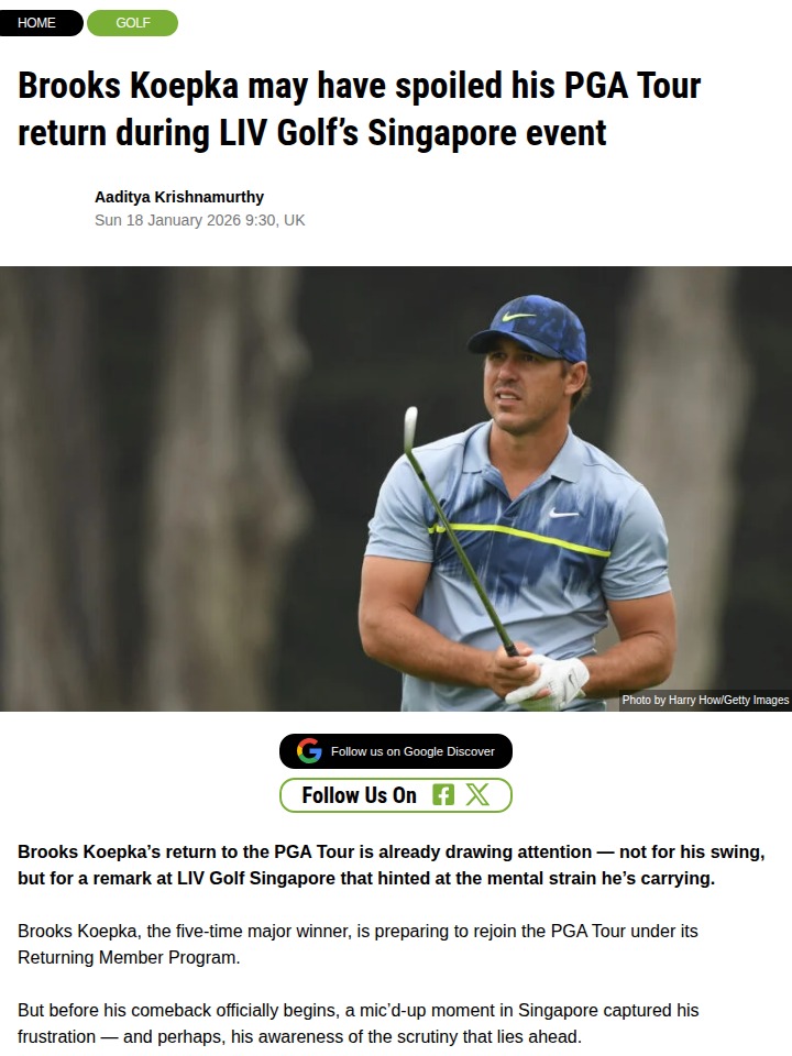 Michael Singh+FollowKoepka’s Korn Ferry Quip: PGA Return Drama?Classic Koepka or signs of pressure? During LIV Golf Singapore, Brooks “BK” Koepka dropped a self-roast about going “back to the Korn Ferry” after a bad shot. Fans are split: was it just his trademark humor, or is the five-time major champ feeling the heat ahead of his PGA Tour comeback? With his return under the microscope and old rivalries brewing, every word and swing from Koepka is set to spark debate. What do you think—vintage BK or nerves showing? #Sports #Golf #BrooksKoepka00Share